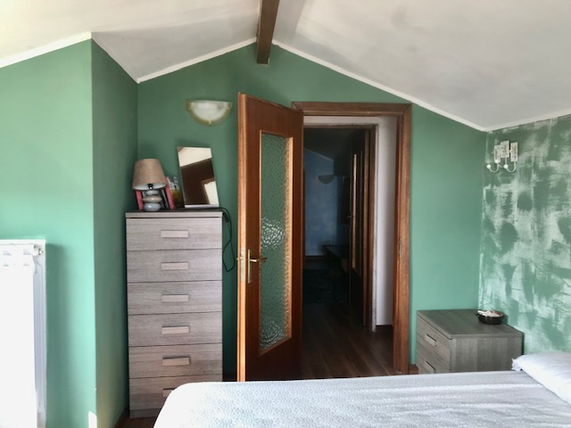 Im Obergeschoss gibt es zwei Schlafzimmer, eines davon mit Terrasse, von der aus Sie einen schönen Blick bis ins Tal genießen können.