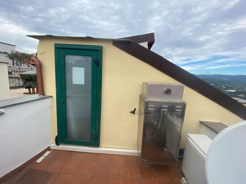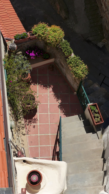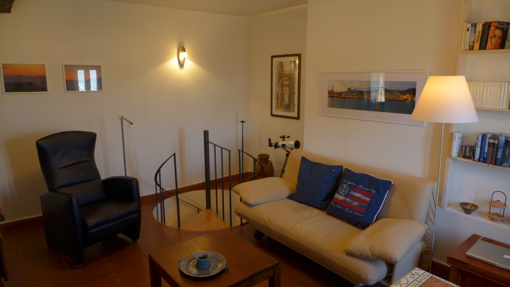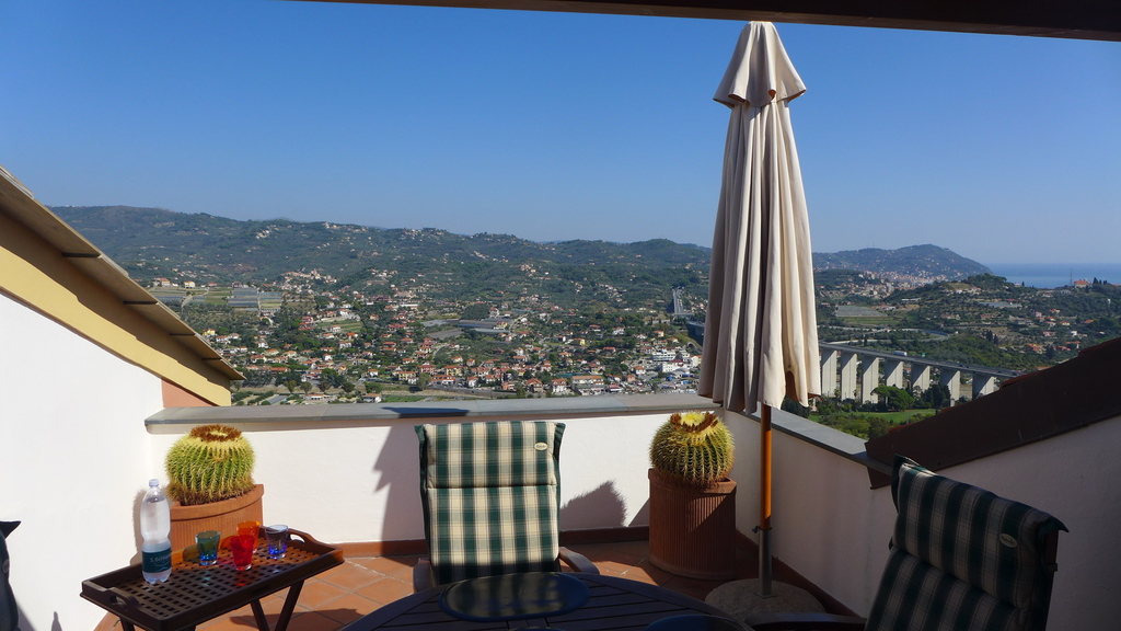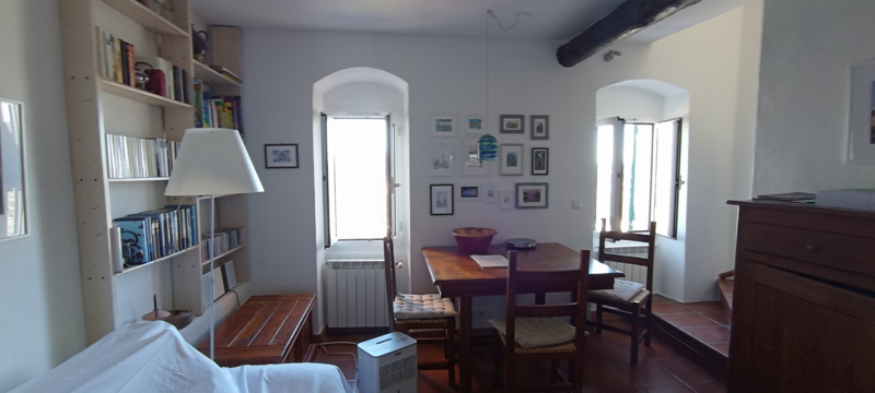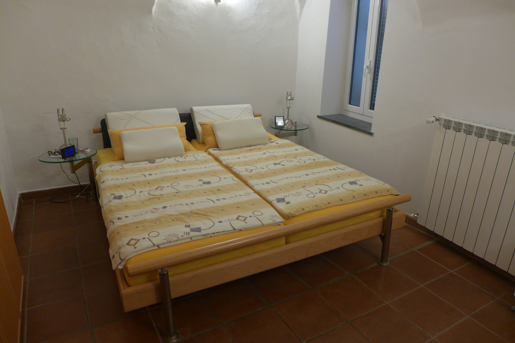 Poggi gehört zu Imperia und ist nur 2 km vom Meer entfernt. Dieser sehr ruhige und sonnige Ort mit 360°-Blick auf das Meer, die Hügellandschaft und Porto Maurizio gilt als einer der schönsten Teile der Provinzhauptstadt. Das vollständig renovierte und modernisierte Haus aus dem 17./18. Jahrhundert besteht aus 3 Etagen mit zwei Eingängen und einer kleinen "grünen" Eingangsterrasse. Der untere Eingang führt zu einem Doppelschlafzimmer mit 2 Fenstern, dem Bad, der Diele und einer Wendeltreppe in das erste Obergeschoss. Dort befinden sich das Wohnzimmer und die Küche ( mit zusätzlichem Eingang von außen über eine Treppe). Im 2. Obergeschoss gibt es zwei Terrassen - die große mit wunderschönem, unverbaubarem Blick auf Meer, Porto Maurizio und Hinterland. Klimaanlage für beide Wohnebenen, neue Brennwert-Gasheizung mit Internet-Zugang, Doppelverglasung, pflegeleichte Terracotta-Böden, Persiane (Fensterläden), qualitativ gute Vollausstattung mit Mobiliar und leisen Geräten etc. Sehr gepflegter Zustand. Sofort bewohnbar. Ein Teil der großen Terrasse ist neu überdacht und könnte durch Einbau einer Glasschiebetüre oder einer ausfahrbaren Markise aufgewertet werden. Die Nord-Ost Orientierung ermöglicht die Terrassennutzung auch nachmittags und abends ohne Blendung oder Hitze. Sie können eine große, vor kurzem renovierte Garage separat erwerben, die 800 Meter vom Haus entfernt liegt. Parkplätze sind in Poggi rar, vor allem in den Sommermonaten.
